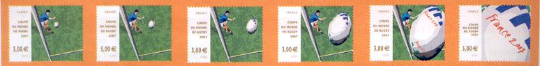 La technique lenticulaire, sur le timbre « Coupe du Monde de Rugby 2007 » permet de décomposer une transformation en 6 étapes.