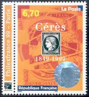 En 1999, lors de l'Exposition internationale de Paris pour fêter le 150e anniversaire du premier timbre-poste français (0.20c noir Cérès), a été imprimé un timbre avec une tête Cérès en hologramme. Le support est en héliogravure.