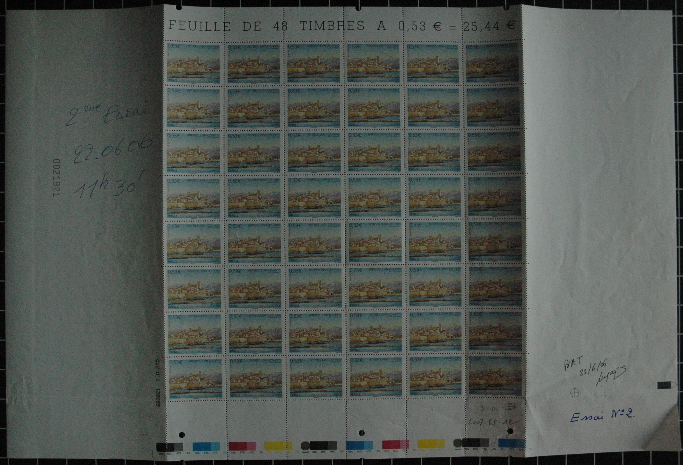 (Bon à tirer numérique du 23.06.6 du timbre 0.53€ « Antines - Jouan-les-Pins » imprimé sur la presse TD215 avant découpe)