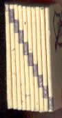 L'assemblage de 100 feuilles obtenu était relié, comme un livre, par une machine et collé avec une colle chaude plastique avec une couverture rouge puis massicoté en 52 mm de large avec une chute au bas de 26 mm.