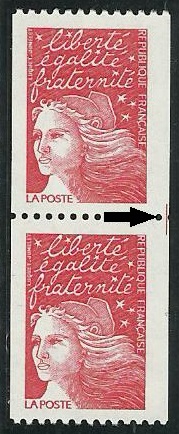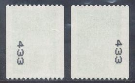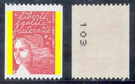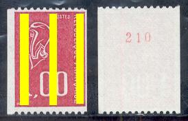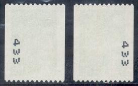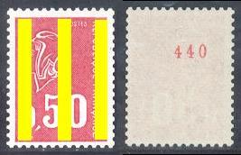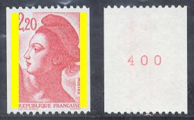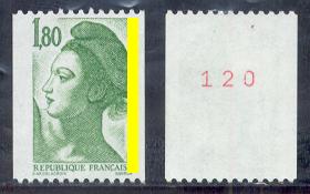 A partir de Mars 1986, les numéros rouges sont imprimés tous les cinq timbres en bobines de 500 timbres.