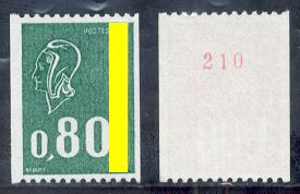 Depuis 1962, un timbre sur dix porte un numéro rouge imprimé au verso, sur la gomme, pour faciliter la comptabilité des bobines de 1000 timbres.