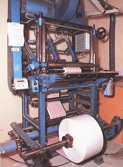 Les numéros et les inscriptions de service sont apposés par la presse imprimante juste après limpression de la figurine- le massicotage par la refendeuse, de la bobine initiale et des marges latérales comportant les inscriptions de service.
