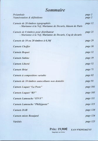 REPERTOIRE FRANC.Kdes carnets de timbres-poste d'usage couranten nouveaux francs et en euros
