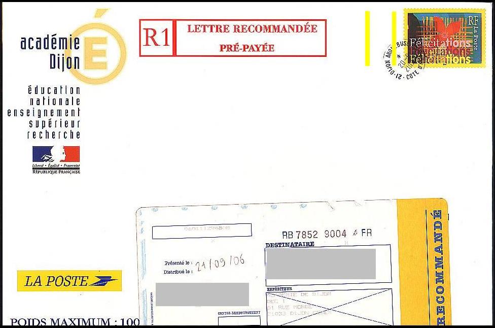 (Recto-verso d'un Prêt-à-poster 100g Lettre Recommandée