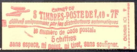 (Carnet fermé composé de 5 timbres 1.50FF rouge «