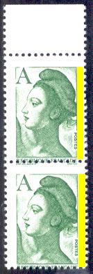 Roulette Lettre Verte 20g vert « Marianne et l'Europe » avec un piquage à cheval vertical